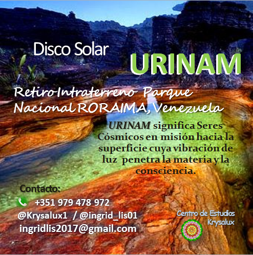 Estaremos trabajando en el Retiro Intraterreno de Roraima en Venezuela y su Disco Solar URINAM: Guardián de lo más Puro, la Esencia de un Nuevo Código, la Idea que el Padre Creador tuvo, el verdadero Arquetipo.
