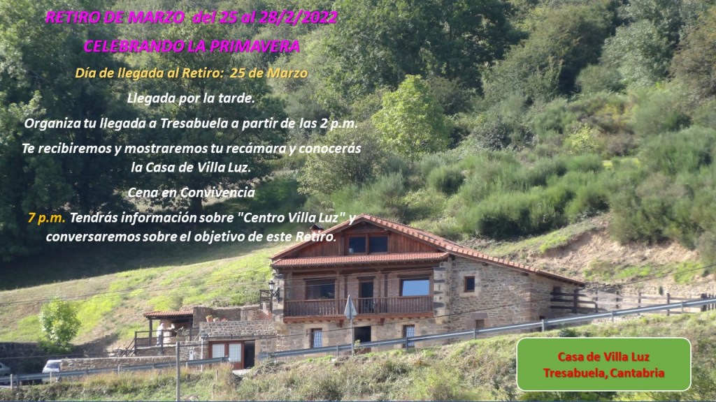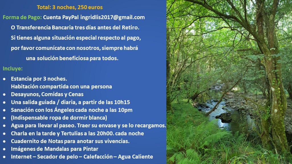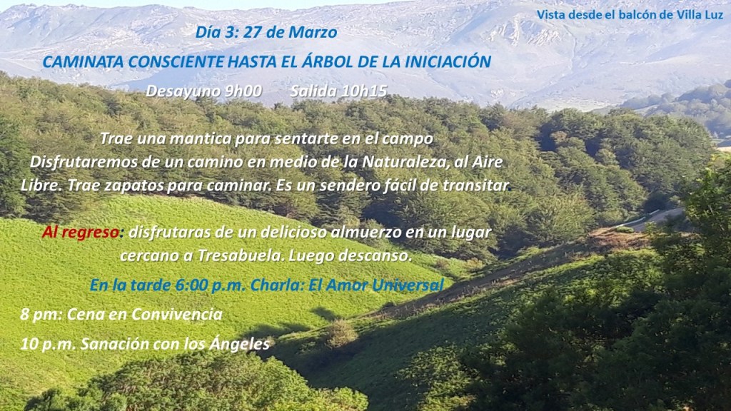 ¿Nos acompañas a anclar la energía de los vórtices que servirán en nuestros Retiros de Armonía y Paz? Los Vórtices son Centros de Poder y los Maestros nos ayudarán a acondicionarlos para beneficio de todos. En un ambiente de tranquilidad, en las montañas Cantábricas, plenas de magia y tranquilidad tendrás la oportunidad de conectar con la Naturaleza y con tu Interior. Te invitamos a realizar este Retiro donde el objetivo es Anclar Altas Energías en ti y en nuestro Planeta.
