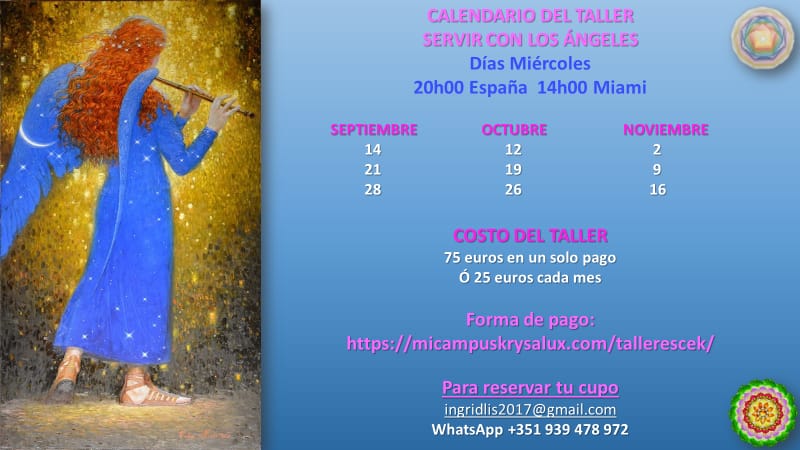 Recordándoles que el próximo Miércoles 13 de Septiembre, comenzamos el Nuevo Taller SERVIR CON LOS ÁNGELES
